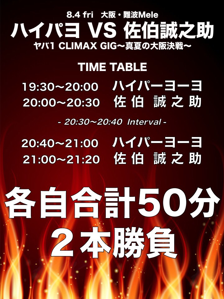 「ハイパヨ VS 佐伯誠之助 ヤバ 1 CLIMAX GIG〜真夏の大阪決戦!」